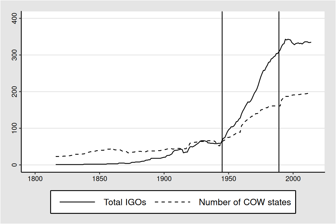 The analysis is based on those provided in J. C. Pevehouse et al. (2020). For more information on the IGO data sets and additional downloads, see Intergovernmental Organizations (v3).