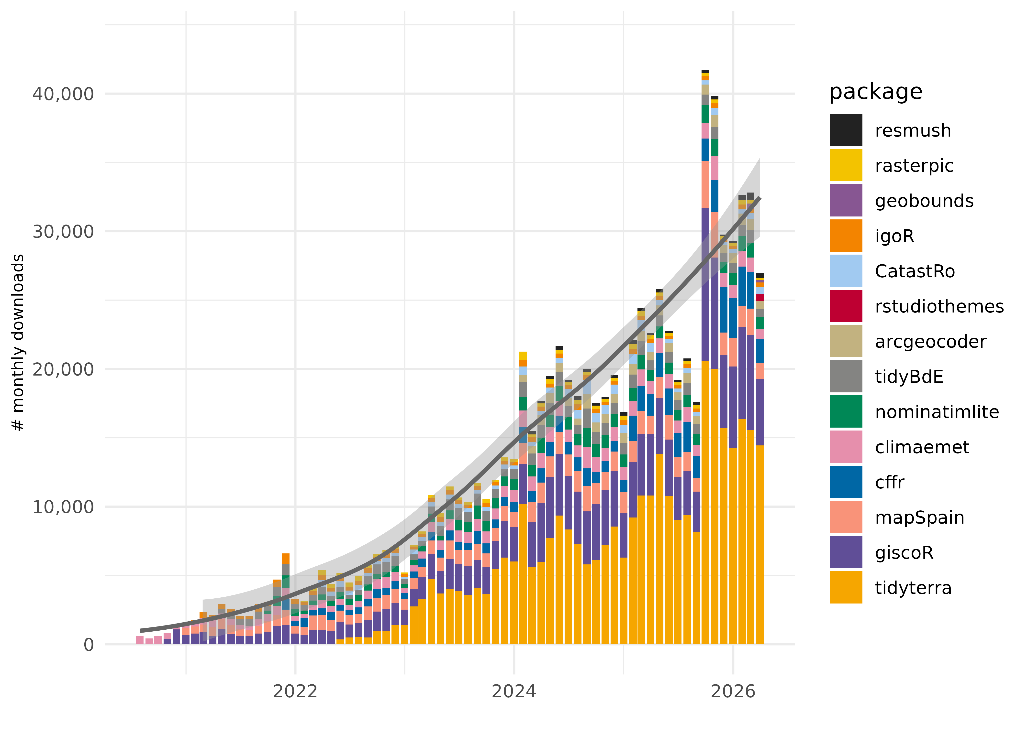 Downloads of my packages from CRAN.